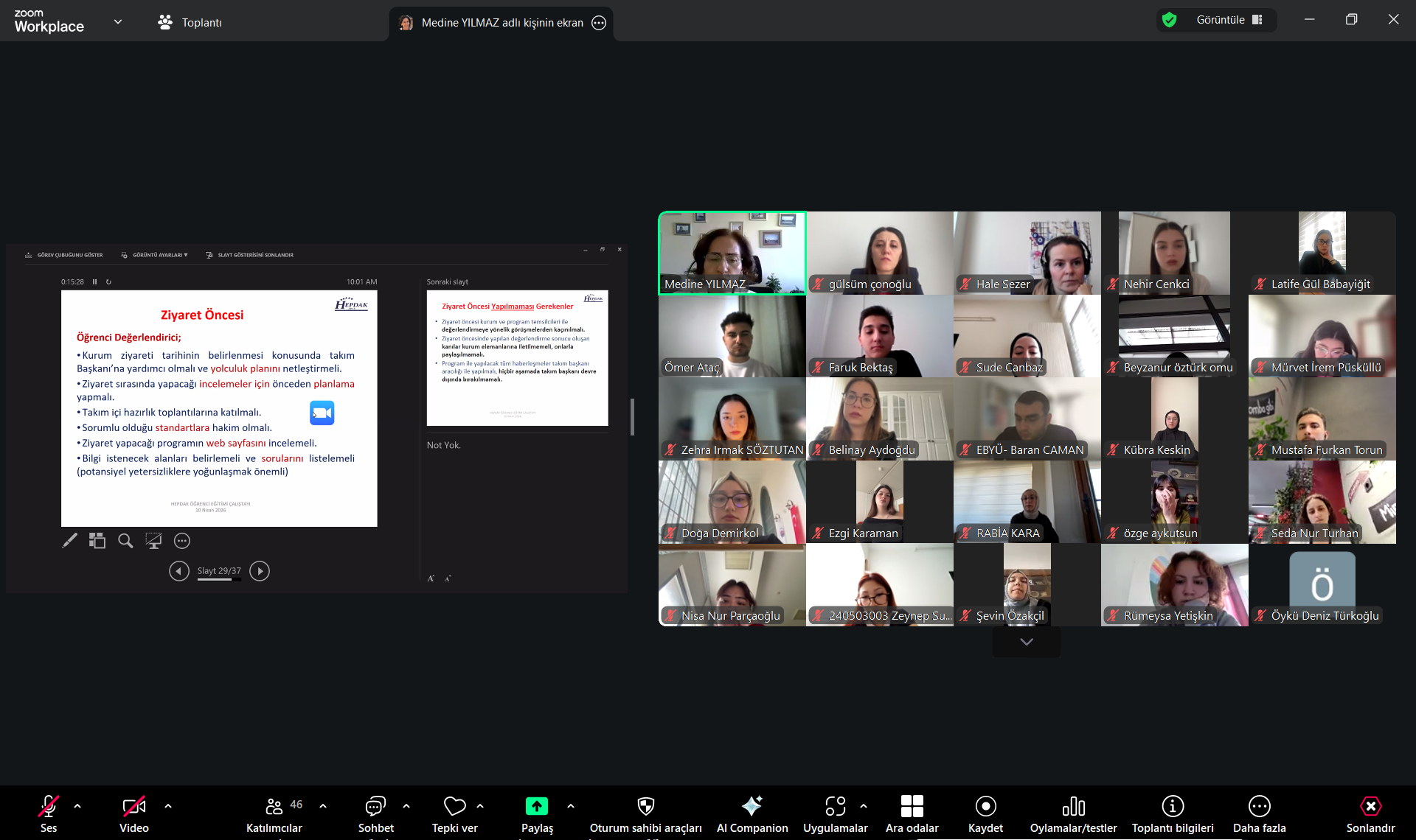 Çalıştay kapsamında katılımcılara HEPDAK akreditasyon süreci, öğrenci değerlendiricilerin değerlendirme sürecindeki rolleri ve değerlendirme sürecinin davranışsal boyutu hakkında bilgi verilmiştir. Programın uygulama bölümünde ise soru hazırlama, rapor yazımı ve rapor sunumuna yönelik oturumlar gerçekleştirilmiş; katılımcılar süreç hakkında uygulamalı deneyim kazanma fırsatı bulmuştur. Ayrıca deneyim paylaşımı oturumunda, akreditasyon sürecinde öğrencinin rolü ele alınmış ve önceki deneyimlerden yola çıkılarak katılımcılara yol gösterici paylaşımlar sunulmuştur. Çalıştay, son test, genel değerlendirme ve kapanış oturumu ile tamamlanmıştır.