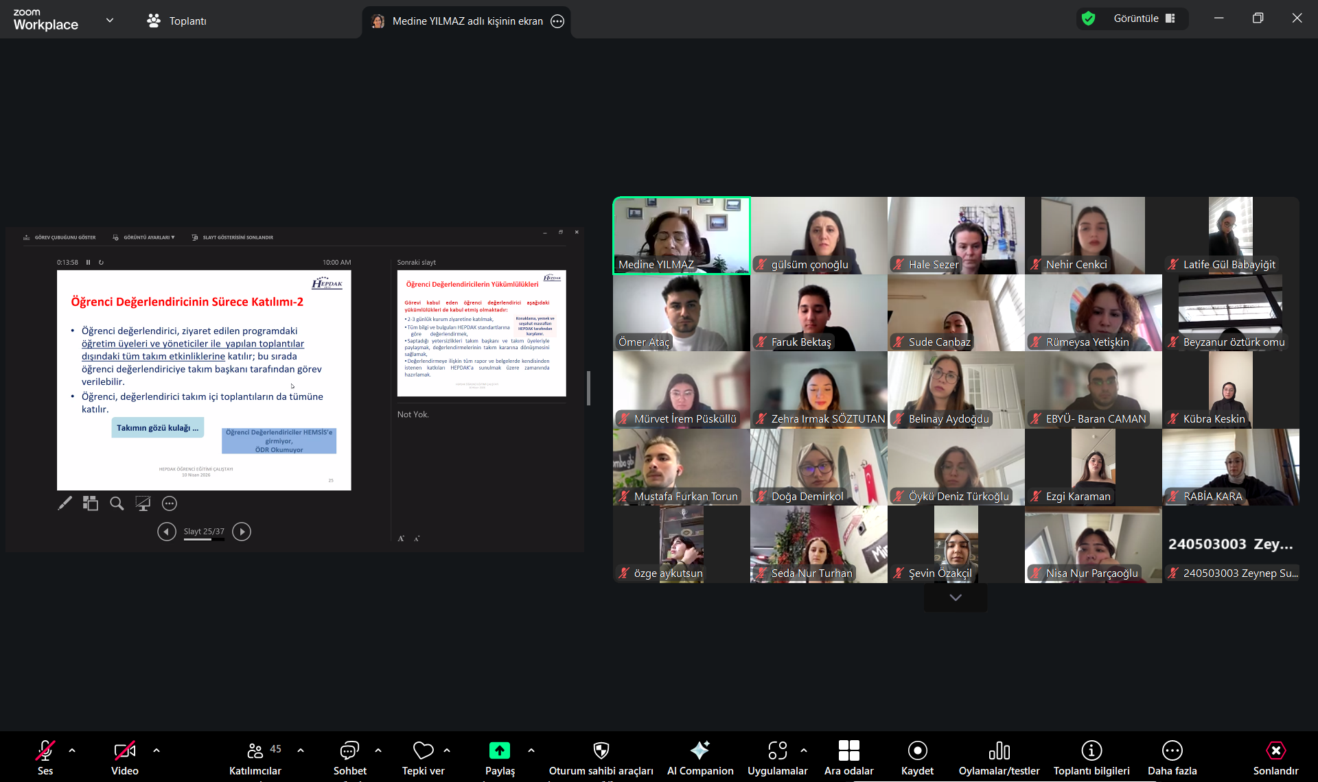 17 kurumdan 40 öğrencinin katılım sağladığı bu çalıştay ile öğrenci değerlendiricilerin akreditasyon süreçlerine ilişkin bilgi ve farkındalıklarının artırılması, değerlendirme sürecine etkin katılımlarının desteklenmesi amaçlanmıştır.