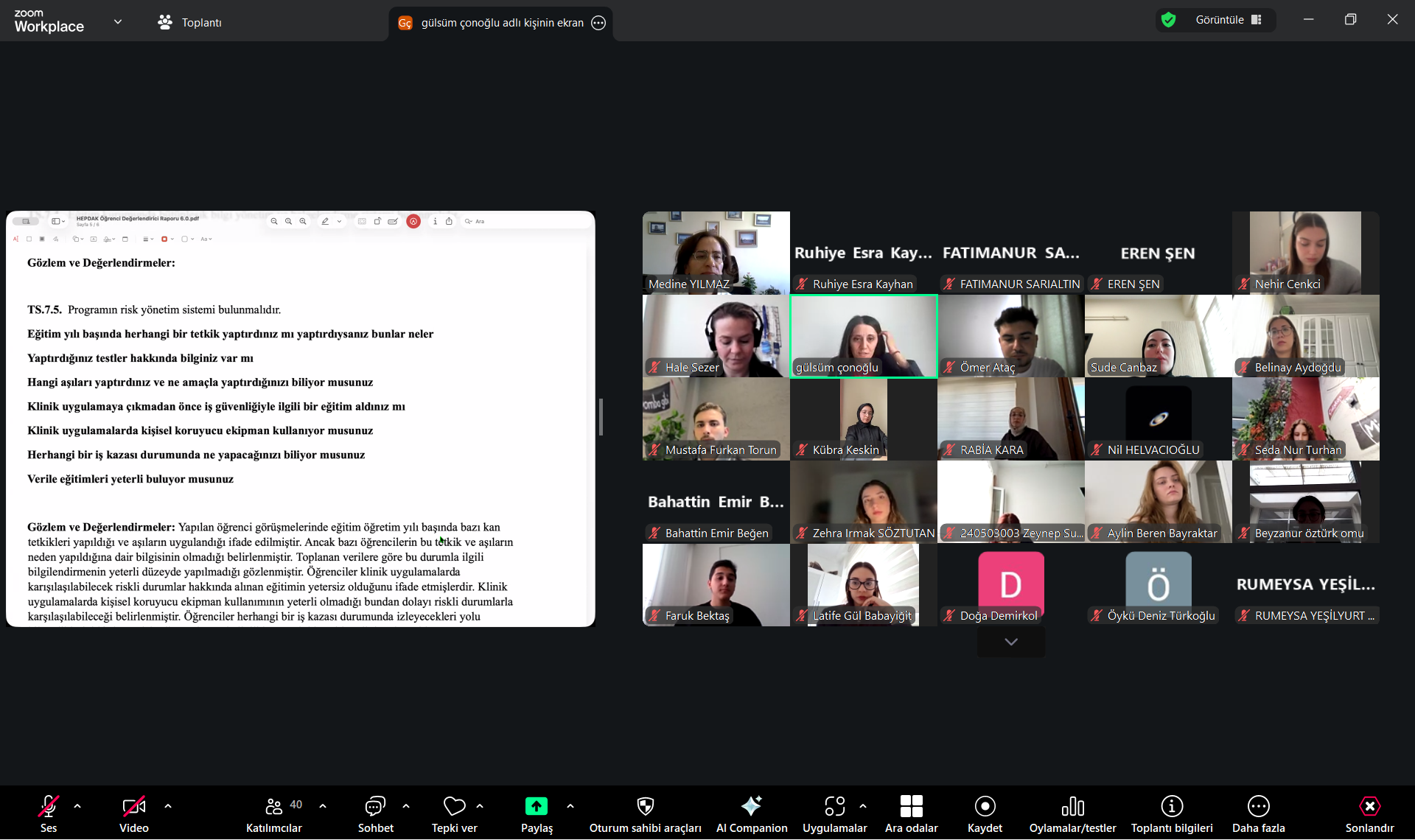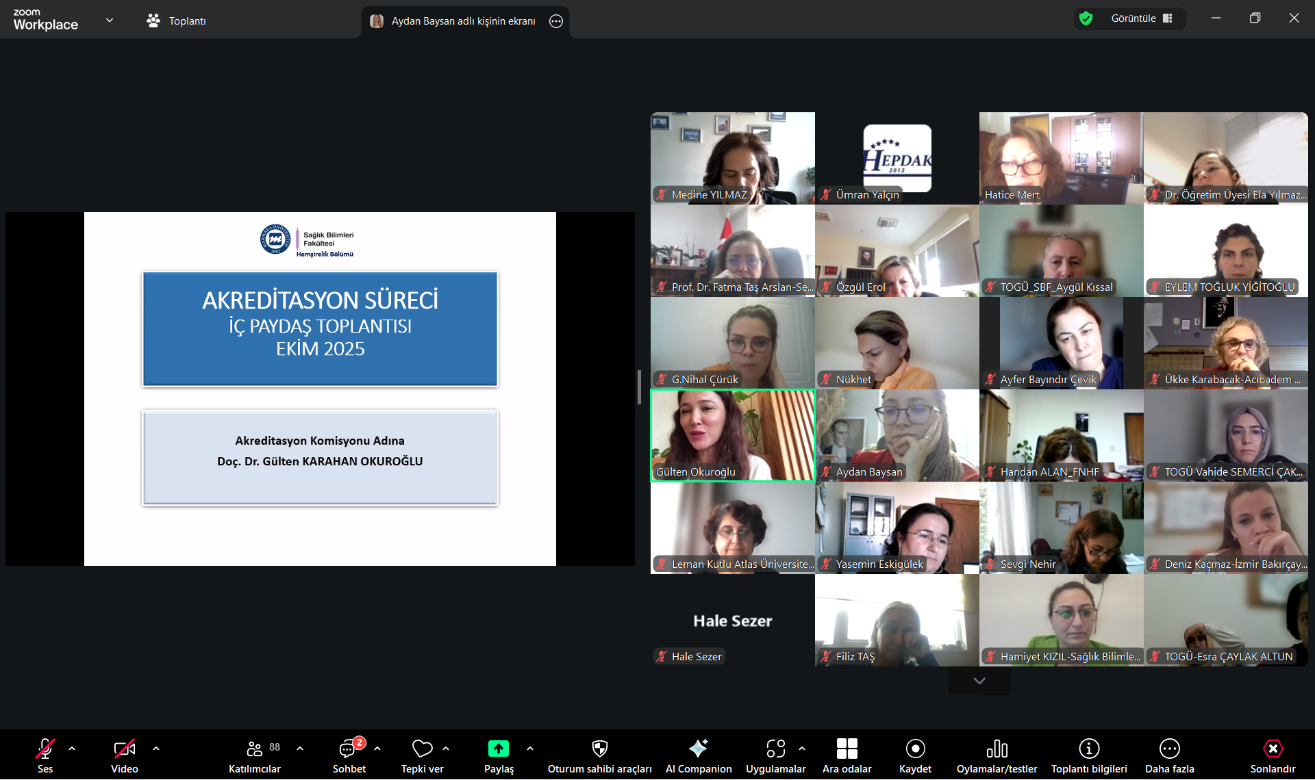 Moderatörlüğünü Prof. Dr. Ayla BAYIK TEMEL'in yürüttüğü toplantıda Ondokuz Mayıs Üniversitesi Sağlık Bilimleri Fakültesi Öğretim Üyesi Prof. Dr. Özen KULAKAÇ ve mezun öğrenci Fatih DİLEK mezun izlemi ile ilgili görüşlerini paylaşmışlardır.
