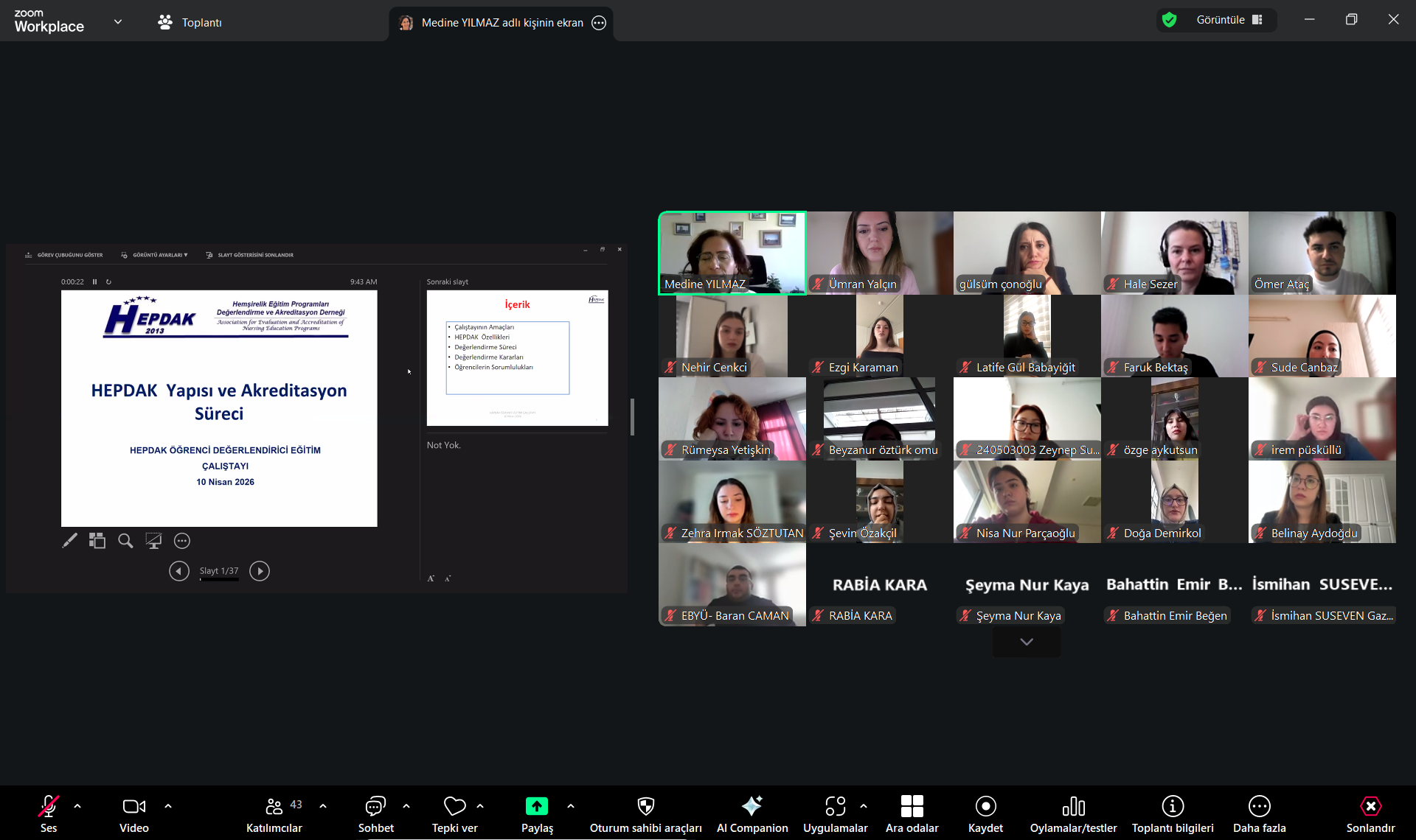 Hemşirelik Eğitim Programları Değerlendirme ve Akreditasyon Derneği (HEPDAK) tarafından düzenlenen 2026 Yılı Öğrenci Değerlendirici Çalıştayı, 10 Nisan 2026 tarihinde başarıyla gerçekleştirilmiştir. Program, ön test uygulaması ile başlamış; ardından açılış ve tanışma oturumu ile devam etmiştir.