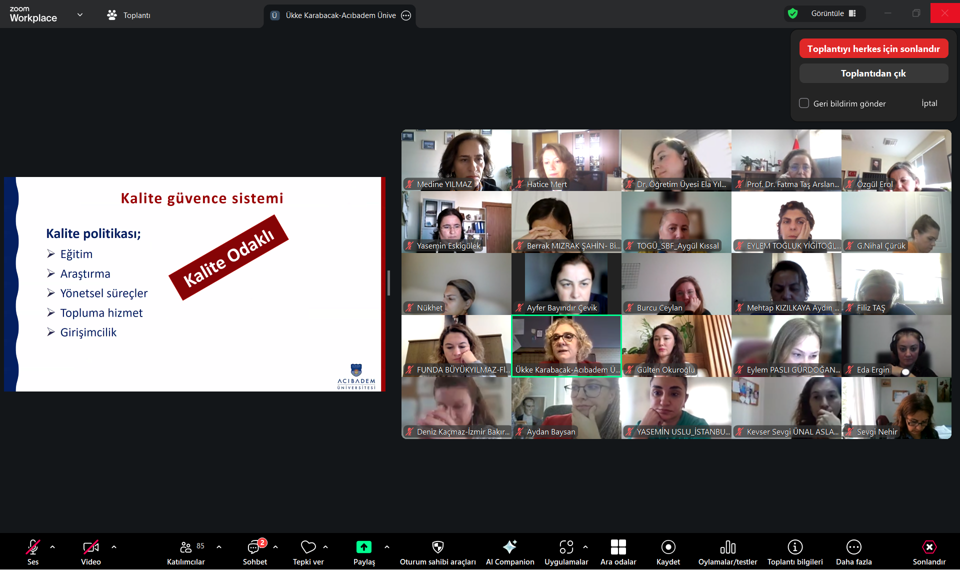 Toplantı ülkenin eğitim bakanın konuşması, ENQA başkanı (The European Association for Quality Assurance in Higher Education),EQAR başkanı (The European Quality Assurance Register for Higher Education),CEENQA başkanı (Central and Eastern European Network of Quality Assurance Agencies), OSCE proje koordinatörü gibi bir çok akreditasyon birliğinin katılımıyla yürütülmüştür. NAQA başkanı kurumların savaş öncesi ve sonrasında yürüttüğü aktiviteleri konusunda paylaşımlarda bulunmuştur. Kurumun savaş başlangıcından itibaren 762 kurumun öz değerlendirme raporu aldığını, 391 sonuç kararı verdiğini ve 604 kurumu savaş nedeniyle koşullu akredite ettiklerini vurgulamıştır. Toplantıda ülkenin önemli üniversitelerinin rektörleri bu süreçte eğitimlerini sürdürme şekillerini sunmuştur. Maripoul Üniversitesi, Karazin Üniversitesi, Dnipro Teknoloji Üniversitesi, Taras Shevchenko Üniversiteleri savaş sürecindeki eylem planlarını açıklamıştır. Üniversitelerin bir çoğu bu süreci kısmen on-line sürdürdüklerini, Erasmus gibi değişim programlarını değerlendirerek hem öğrenci hem öğretim elemanı değişimini gerçekleştirdiklerini ve özellikle Avrupa’daki üniversitelerinde temsil ofisleri sayesinde eğitimlerini sürdürmeye çalıştıklarını belirtmiştir.